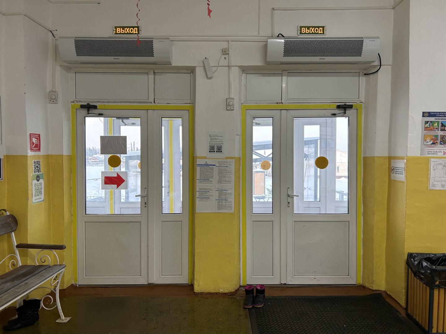 | Кулер с питьевой водой | Фото-стенд (фотографии мероприятий) | Памятка о защите граждан (COVID-19) | Пожарный гидрант (при входе) |
